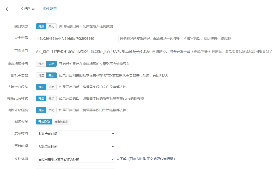4. 重复标题检测:开启以后已存在的标题不在入库,关闭后可重复发布